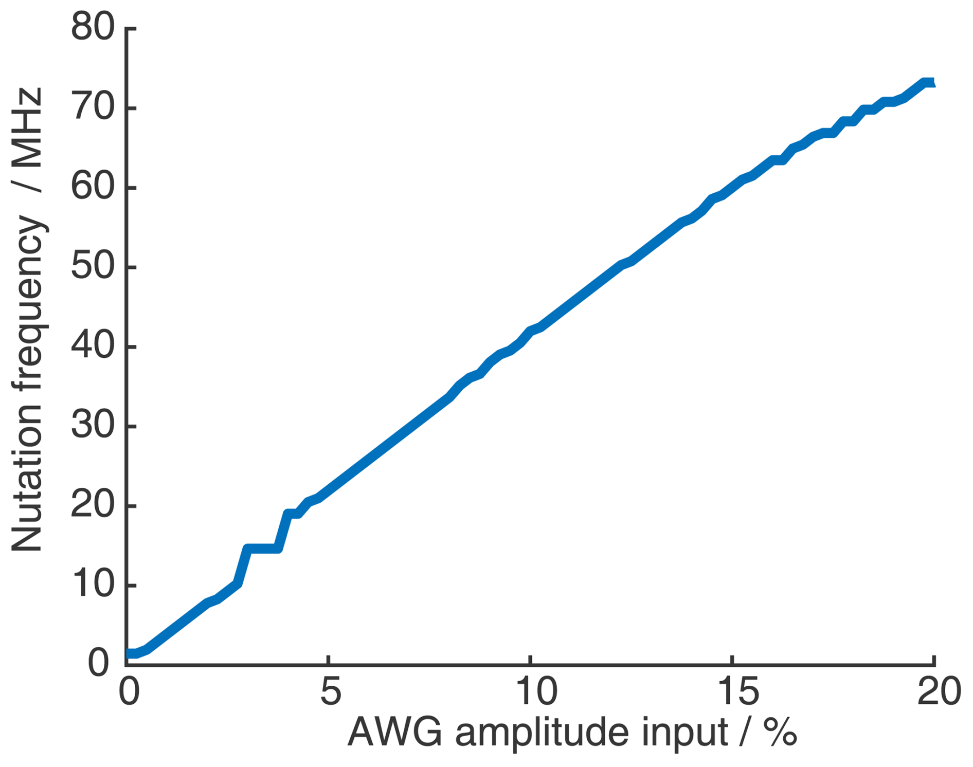 It is important to check if all amplifiers, in particular – the TWT (traveling-wave tube) high-power microwave amplifier – are used in their linear-gain regime or if an appropriate linearization procedure needs to be applied (Endeward et al., 2023). It also needs to be verified that the output of the AWG (arbitrary waveform generator) is linear with respect to the input amplitudes for fast amplitude changes (see Sect. A4 and Fig. A2 in the Appendix); here, it is not only the Nyquist criterion that needs to be considered but also the analog bandwidth of the AWG. It should be verified experimentally if the desired bandwidth is achievable over the full-amplitude bit resolution of the AWG. We have tested this with three different AWGs on two different spectrometers, a commercial Bruker spectrometer and our home-built X-band spectrometer (Bretschneider et al., 2020). We found that amplitude changes at the fastest time resolution of all three AWGs were limited far below the maximum output amplitude of the AWGs, defined by their dynamic range (bit resolution). We adjusted the pre-amplifiers accordingly to make sure that, with the reduced AWG amplitudes, the TWT amplifier could still be driven to the maximum output intensity (in the linear regime) to achieve maximal B1 field strength with linear amplitude modulations (see Sect. A4 in the Appendix for more details).